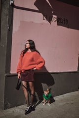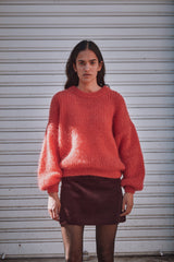 LUCIE Batwing Sweater in Mohair Wool - Coral
