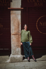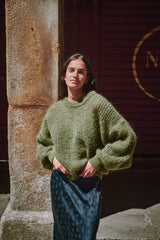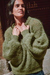 LUCIE Batwing Sweater in Mohair Wool - Olive Green