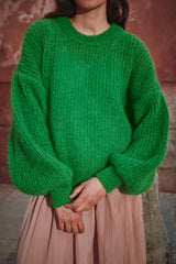 LUCIE Batwing Sweater in Mohair Wool - Parrot Green