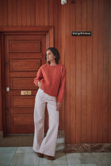 PAOLA Irish Cable Sweater in Merino Wool - Coral