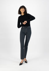 Piper Straight, a timeless jean. Straight Fit. High Waist. Tapered Leg. Button fly. Classic five-pocket styling. Satin-finish Silvertone buttons and rivets.