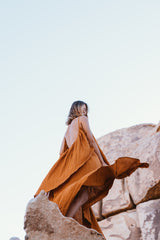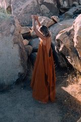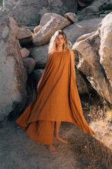 Inspired by a love of travel and bold bohemian elegance, A Perfect Nomad's collections are defined by free flowing silhouettes and soft organic fabrics. Their signature ‘Syros’ dress has ease and drama combined. It has an ultra low back with a cascading wing and softly scooped neckline. Its slightly tiered hem makes it easy to wear with barefeet, flats or heels. Bohemian and luxurious the Syros will take you effortlessly from the beach into the evening year after year.