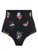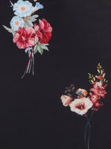 The black fabric features a detailed floral print originally hand-painted by designer Jessica Kayll before being digitally printed onto the fabric.