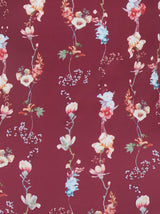 The burgundy fabric features a detailed floral print originally hand-painted by designer Jessica Kayll before being digitally printed onto the fabric.