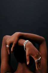 The skin of our own hand is as unique as a blade of grass. Each ring, although different in form, has a distinct pattern. The change in textures signify voyages; moments of unpredictability amongst quiet serenity. This ring has been handmade using the lost wax casting process. Individual blades of grass are chosen, dried and developed in wax before being cast into precious metals. Assay Hallmarked for authenticity.