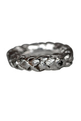 Bold and iconic, the Serpent seed ring wraps around your finger with its dark and mysterious form. Defined by a strong woven texture and star-set black diamond centrepiece.
