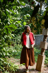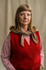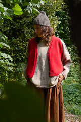 A neat v-neckline brings a sense of ease to our loose button-up vest in a slightly muted tone of Red. Timeless, easy throw on, baggy style with dropped armholes, to give plenty of room when wearing with shirts and sleeved dresses.