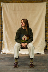 The House Intarsia Jumper celebrates traditional British knitwear in its purest form. knitted in 100% Shetland wool, it features a striking landscape intarsia pattern in muted primary tones — bold yet softened for everyday wear.