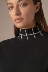 The Alexia Jumper from Francis Stories is a simple but highly sophisticated sweater made from the finest materials, featuring a black and white plaid turtleneck. The dense knitting pattern and the mid-thickness yarn used create a uniquely soft texture and a warm thermal sensation. A really useful piece to add to your winter wardrobe, with an original touch thanks to the plaid turtleneck.