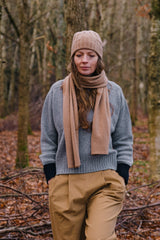 Linnhe scarf is made in Scotland with the finest quality Italian recycled cashmere, our yarn is created with respect for the environment. Crafted with every attention to detail, the Linnhe scarf has a softly felted finish creating a super soft fine gauge scarf with a small ribbed trim. Timeless, sustainable luxury essentials.