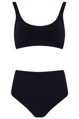 The Cove Bikini is a double layered versatile bikini that combines both comfort and style. It has a sporty style crop top that provides support but also has a deep open back great for tanning (it also doubles up well as a sports bra!)