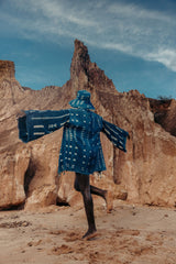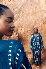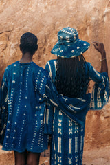 The Ayita Robe is crafted from handwoven vintage indigo cloth, naturally dyed using ancient methods in Burkina Faso, West Africa.
