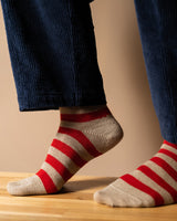 Knitted in soft, breathable merino wool, these socks offer everyday comfort with a subtle touch of colour. The fine gauge knit makes them smart enough to wear with tailoring, while the playful stripes bring personality to jeans, skirts, and boots alike.