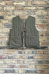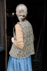 The Amy gilet in jacquard quilted Indian cotton features large rounded pockets and a tie front. It’s lined with a vintage deadstock Liberty Tana Lawn. Great for layering over a top, dress or sweater and can be worn all year round.