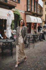 55% Pure New Wool | 45% Linen, Lining: 100% Cupro, Recycled buttons.