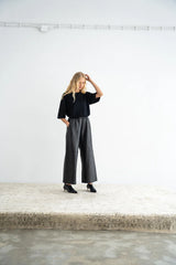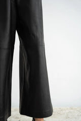 The Lois pant, a wide leg cropped leather pant offering sophisticated drama. A beautiful minimal silhouette for the ultimate winter wardrobe.
