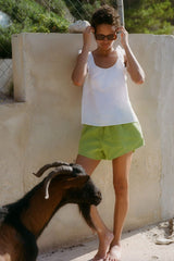 The Charlotte Shorts in apple green are cut from breathable, sustainably sourced linen and sit mid-to-high on the waist. They have an elasticated waistband made from organic eco-elastic for that extra bit of comfort and side pockets. This super versatile pair of linen shorts is great for the beach, at home or even in the gym.