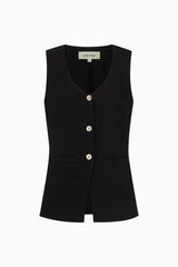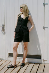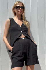 Upgrade your wardrobe with the Rosalie Buttoned Vest, a timeless staple crafted from soft Belgian linen. Designed with a semi-fitted silhouette, center front button closure made of responsibly sourced mother-of-pearl, and a back vent, it pairs seamlessly with the matching skirt for a chic, coordinated look. Perfect for both casual and dressy occasions, this must-have piece brings sophistication to any outfit.